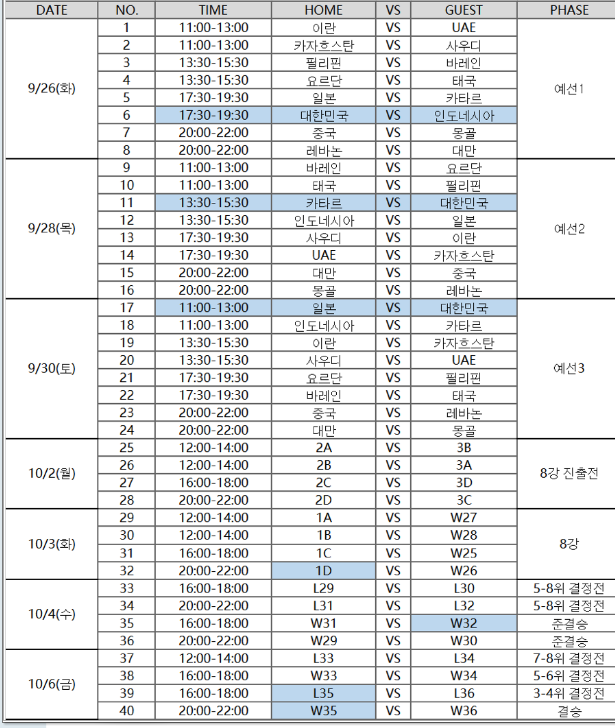 | C조 | 요르단, 필리핀, 바레인, 태국 | C조 | 대한민국, 대만, 북한, 태국 |
